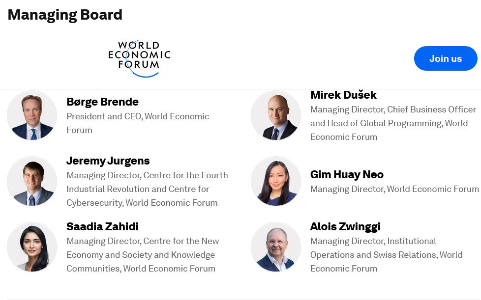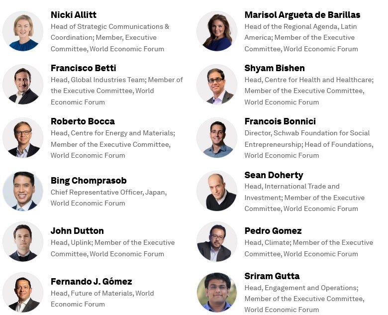 The Executives working hard to lock us in 15 Minute Cities with Social Credit Scores and Digital ID by 2030.
